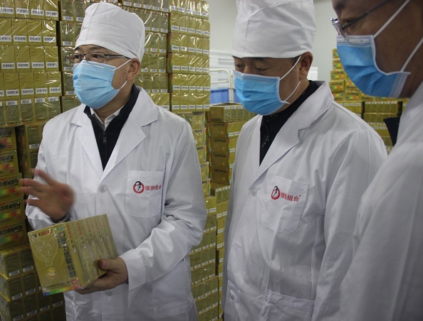 贠局長對好醫生集團取消春節放假開足馬力生產,捐款捐藥馳援武漢等抗疫一線,引入醫用防護用品生產線緩解物資緊缺的做法給予高度贊揚,對企業在疫情期間沒有裁員減薪以及細致入微的防控工作表示肯定。在車間現場,贠局長向相關負責人了解了強強組合口服五維葡萄糖的科學組方后表示,預防大于治療,該藥品具有提高人體免疫力的功效,好產品希望有更多人認識它,鼓勵“山西造”品牌繼續擴大影響力。贠局長同時強調,企業在疫情期間更要重視產品質量,嚴格按GMP規范,生產更多更優的藥品,為全省醫藥經濟轉型發展做出更大貢獻。