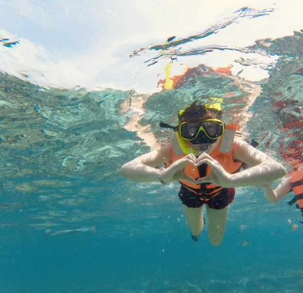 潛水是一次特別的體驗(yàn),剛開始下水的時(shí)候,我真的特別害怕,后來我努力克服在水下用嘴巴換氣的困難,很快我學(xué)會(huì)了潛水,透過潛水眼睛我看到了美麗的海星,五彩斑斕的魚兒出沒在招搖的珊瑚礁中,我徹底沉浸在涼爽清透的海水中,我感到自己與自然融為了一體。