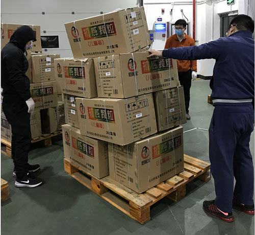 2020年2月8日下午,在得知大卡車還有2個(gè)小時(shí)就要下高速,江西商務(wù)經(jīng)理馮萍和一起幫忙的家人,康復(fù)新事業(yè)部省區(qū)經(jīng)理勒系儀,抗感事業(yè)部江西省區(qū)經(jīng)理許昊等早早地守候在高速公路出口。在得知情況后,康復(fù)新事業(yè)部大區(qū)總監(jiān)張小琦,也毫不猶豫放棄和家人團(tuán)圓過(guò)節(jié),迅速趕了過(guò)來(lái)幫忙。